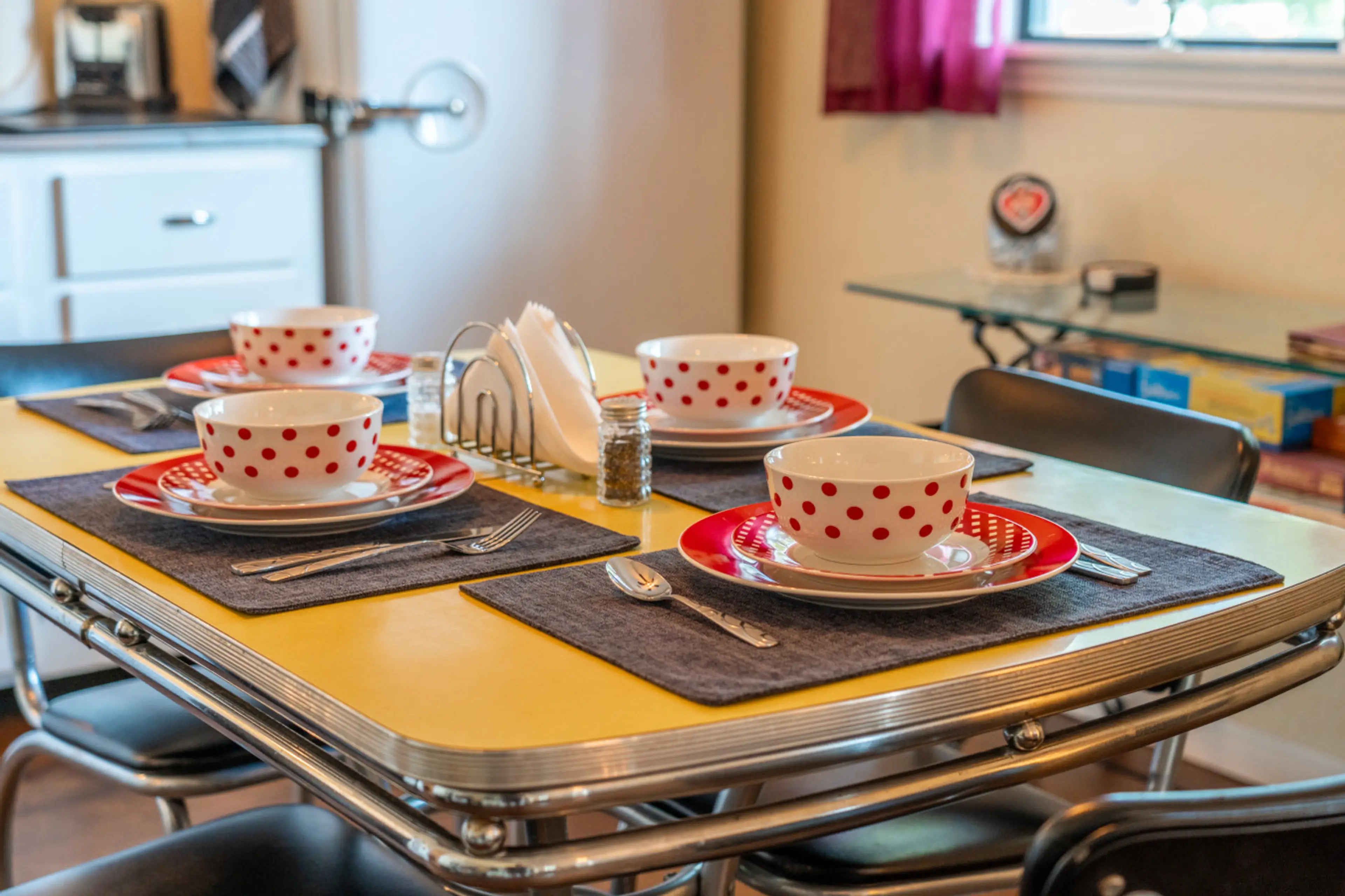Positive: Great lil'place , very convenient for food,restaurants very close , Very nice & quiet neighborhood. The beds were very comfortable , clean , air conditioning was awesome (as it was 97°)very cute kitchen & dining area with all the 50's vibes along with a cute lil'coffee & tea station . There's not enough room for me to say how AWESOME this property is or enough room for the pics we took of this cute cottage . My son & i really enjoyed our stay here .